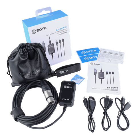 Mit dem BY-BCA70 von Boya können Sie ein Mikrofon mit XLR-Anschluss an Ihr Smartphone oder Ihren Computer anschließen. So haben Sie einen universellen Adapter, um Audio von verschiedenen XLR-Quellen auf ein externes Gerät aufzunehmen. Der Ton wird ohne Verzögerung mit einer guten Abtastrate von 24bit/96kHz aufgenommen. Dank des zuverlässigen Anschlusses, der Möglichkeit der 48-V-Phantomspeisung für Mikrofone und dem Verzicht auf Batterien kann das BY-BCA70 in nahezu jeder Situation eingesetzt werden. Verbinden Sie eine Seite des BY-BCA70 mit einem XLR-Mikrofon oder einer anderen Audioquelle. Die andere Seite kann mit Ihrem Smartphone oder PC verbunden werden. Drei verschiedene Kabel sind im Lieferumfang enthalten; Lightning (iPhone und iPad), USB-C (Android-Smartphones und PC/Laptop) und USB-A (PC/Laptop). Der Lightning-Anschluss ist MFi-zertifiziert (Made For iPhone).
