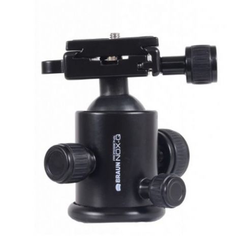 Das Braun Professionelles Stativ NOX 160 ist ein Mehrzweck-Stativ, geeignet für den anspruchsvollen Anwender. Das Stativ hat ein maximales Lastgewicht von 13 kg und kann auf jedem Gebiet platziert werden, dank der verstellbaren Beinen. Der mitgelieferte Kugelkopf hat eine Schnellwechselplatte mit 1/4" Außengewinde. Auf der Schnellwechselplatte können Sie eine Kamera, Videokamera oder ein Fernglas montieren. Der Kugelkopf ist mit einer Wasserwaage versehen. Der Fuß mit dem Schaumgriff kann von dem Stativ demontiert werden und als Einbeinstativ verwendet werden.