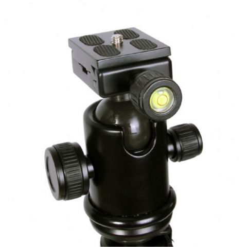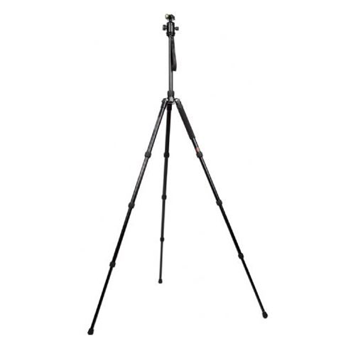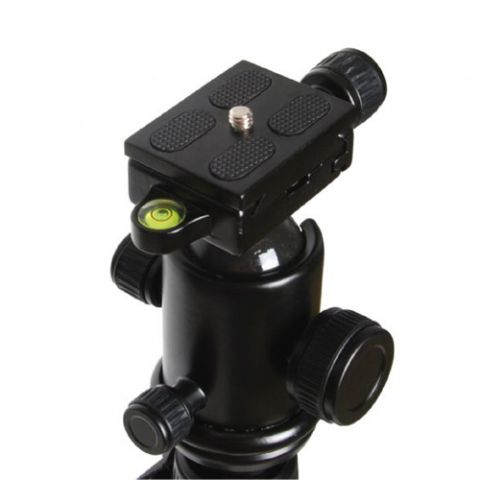 Die Mittelsäule kann stufenlos in der Höhe verstellt werden. Am unteren Ende der Mittelsäule ist ein einstellbarer Haken für mehr Stabilität. Das Stativ hat eine maximale Höhe von 163 cm und ist klappbar in eine sehr kleine Größe (48 cm). Die Beine können gesperrt werden, um das Stativ in einer festen Position zu halten. Im Lieferumfang enthalten ist eine robuste Tasche. Die Unterseite der Beine sind mit Gummi versehen, so dass eine weiche Oberfläche nicht beschädigt wird. Die Beine haben ebenfalls einstellbare Spikes, die ein- und herausgezogen werden können.
