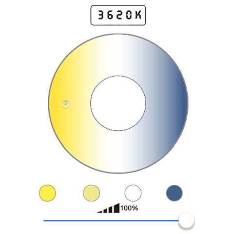 5. Sie können nun mit dem Schiebebalken unten die Helligkeit anpassen. Auch können Sie die Farbtemperatur anpassen, indem Sie über die runde Scheibe in der Mitte streichen.