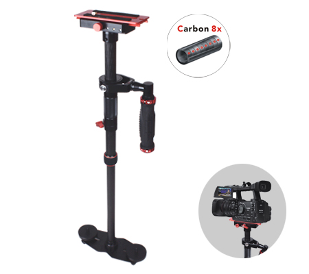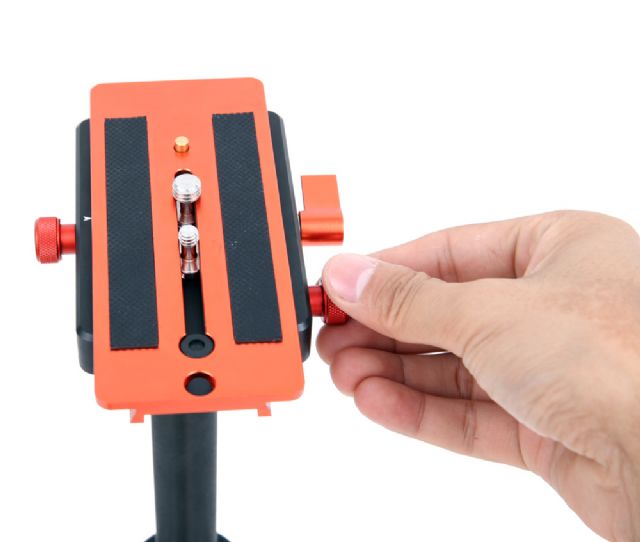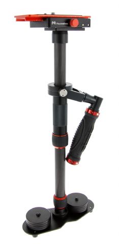 Die Falcon Eyes VST-02 ist ein Stabilisator für Kameras von 1-5 kg. Sobald eine Kamera auf der Oberseite des VST-02 montiert ist, kann es genau ausgewogen werden. Auch wenn mann auf einer Treppe lauft, macht die VST-02 stabile und reibungslose Bilder. An der Unterseite des Stabilisators sind vier Ausgleichsgewichte (200 Gramm je Stück). Wenn diese vier alle da verschraubt wurden, hat die VST-02 dieselbe Funktion als Mini-Stativ.