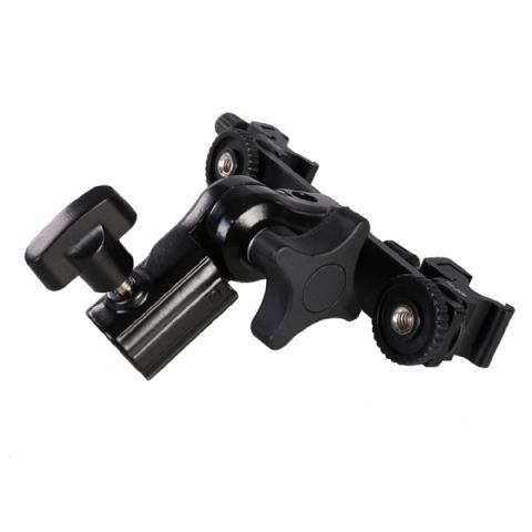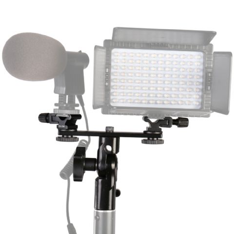 Die Falcon Eyes Twin Mount Tilting Bracket + 2 x Blitzschuh CLD-14A ist mit zwei Blitzschuhadaptern HS-20M ausgestattet, an denen können Sie Ihr Zubehör (zB. Kamerablitze), montieren . Wenn Sie die Blitzschuhadapter abschrauben, können Sie auch weiteres Zubehör mit einem 1/4 "-Anschluss an der Kipphalterung montieren.