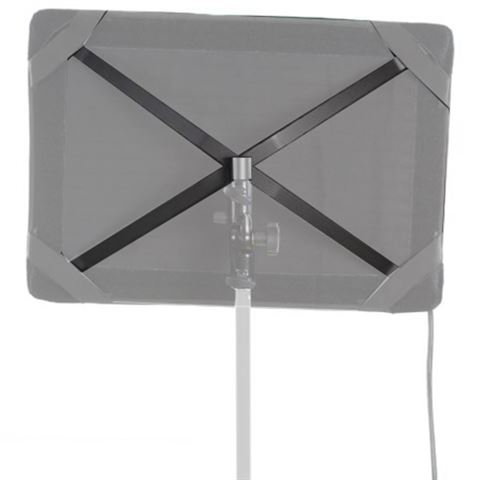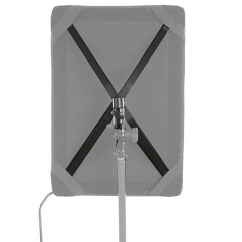 Mit Hilfe des Klettverschlusses (im Lieferumfang des RX-18T und -TD enthalten) können Sie die LED-Panels einfach an den Enden der X-Halterung befestigen. Um die Stangen zu sichern, ziehen Sie die schwarze Schraube an. Sie befindet sich in der Mitte des X-18W.