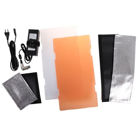 Sie können die LEP-748C über das Stromnetz oder mit einem Akku betreiben. Das Netzteil und das Netzkabel sind im Lieferumfang enthalten. Ebenfalls enthalten sind zwei Farbfilter (orange und weiß) und eine praktische Nylontasche mit Reißverschluss.