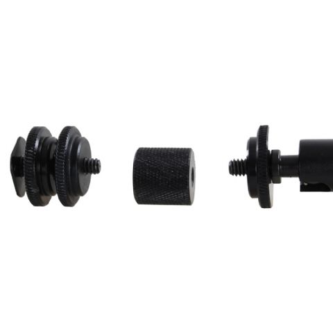 Es ist außerdem möglich, den Teil mit dem Hotshoe Adapter abzuschrauben. Dadurch hat der Arm an jedem Ende einen 1/4" Außengewindeanschluss. Eine weitere Option ist nur den kurzen Teil mit dem Hotshoe Adapter zu verwenden.