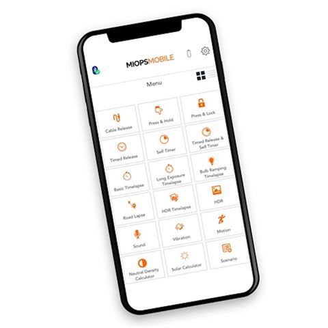 Die Miops Mobile App ermöglicht es, alle Sensoren mit Ihrem Smartphone bedienen zu können, wie z. B. Vibration, Ton, Bewegung und Abstand. Es sind sogar diverse Timelapse-Funktionen verfügbar, um in den richtigen Momenten ein Foto machen zu können. Außerdem gibt es einige Standardfunktionen, wie das Machen von Fotos, solange man den Finger auf den Bildschirm hält; eine Lock-Funktion, mit der kontinuierlich Fotos gemacht werden; eine Timer-Funktion und HDR Möglichkeiten. Sie können diese Funktionen sogar in Kombination miteinander verwenden, dank der "Szenario"-Funktion.