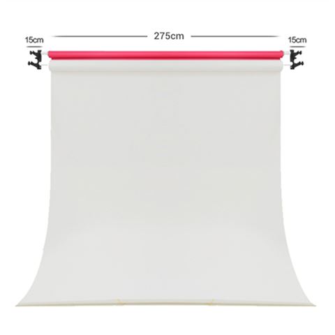 Von der Wand aus gesehen beträgt die Gesamthöhe des Hintergrundsystems 46 cm. Die Rollen (ihre Mittelpunkte) haben von der Decke aus gesehen die folgenden Abstände: 13cm, 17cm, 20cm und 25cm. Das gesamte Außenmaß einschließlich der längsten Rolle von 2,72 m beträgt 2,93 m. Das maximale Belastungsgewicht pro Rollenhalter beträgt 10 kg.